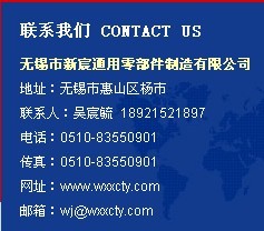 | 无锡市新宸通用零部件制造有限公司 新能源事业部 联系人:吴宸毓 13395130808 注塑冲压事业部 联系人:冯小姐 15961886195 网址:www.wxxcty.com 邮箱:wj@wxxcty.com |